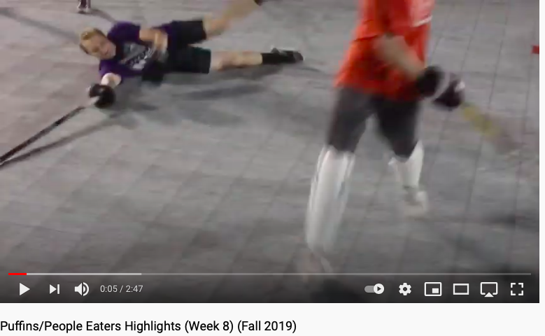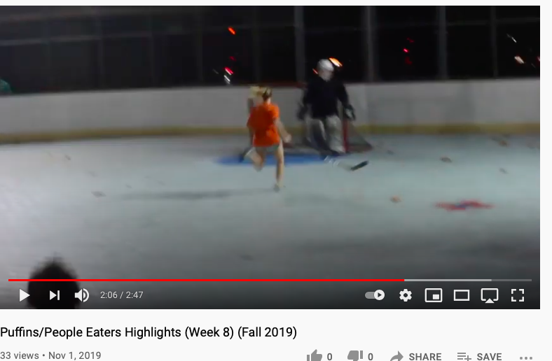Notes: At long last, the first edition of the UES Cup comes to the shores of D5. It’s not quite as prestigious as the Fireball Bowl but they do have a repurposed 2nd place Feasterville Trophy and a lot of bragging rights on the line. History lesson: in Fall 2019 Meg was on the Puffins and although not a captain her team put up an impressive 9 goals to beat the Purple People Eaters 9-2. Meg was not the captain of that team but she definitely had the most fun anyone has possibly ever had in hockey history, playing on a line with Luke and generally ruining Jack’s day. I honestly have never seen her run as fast as she did here, with her team already up by like 5 goals and she’s just burning Purple’s defense to a loose ball in the offensive zone. No one else is even in the frame.