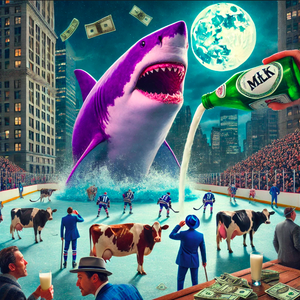Notes: I know I often make fun of AI art in this space but I have to say, ChatGPT really outdid itself with this one. Anyways, this game features the highest scoring team taking on the best defensive team. Incredibly, it’s Jenn’s team who has the most goals per game while Jack’s has the best defense, albeit in a fairly small sample size. The over/under for this game is a complete nightmare to figure out but I’m going to staple it to the standard 6.5 with slight juice on the over as I think purple’s defense is more primed for regression than black’s offense. As for the game itself – Sharks are ostensibly in last place but I believe that too is misleading. This is going to be the first game they have anything close to a full lineup and I’m expecting Jack and Annie to combine for at least 3 goals. Close to toss-up territory in what certainly looks and smells like a trap line but give me the Sharks to pull the (kind of) upset.