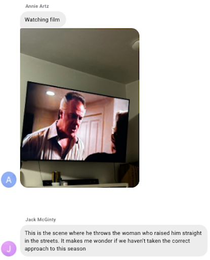 He also told me that he played “B” in Canada which we quickly learned is a higher level of hockey than any standard American league as he got drafted as the 6th of 8 goalies off the board, then reeled off an insane 7-0 record with a 1.65 GAA en route to a 1st place regular season finish for green and a trip to the finals, where they would lose a tight decision after it rained midway through the semis and we literally wiped down the entire rink with paper towels. This was also the last time that blue didn’t make the D5 semifinals, a full year before anyone knew what the hell covid 19 was and the season where Jack and Annie met. Speaking of which…